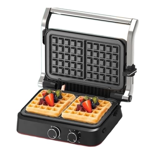 - تصميم متعدد الاستخدامات: جهاز 2 في 1 يتميز بأطباق وافل وشواية قابلة للتبديل لصنع الوافل اللذيذ والأطباق المشوية.