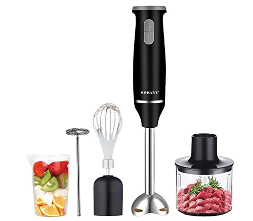 SOKANY - خلاط طعام يدوي 5 في 1 من سوكاني بقدرة 800 واط SK-1714-5، أسود