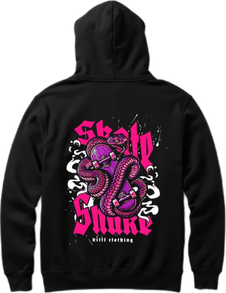 Generic - سويت شيرت بغطاء للراس بتصميم ثعبان من الخلف بلون اسود