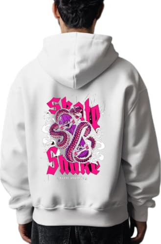 Generic - سويت شيرت بغطاء للراس بتصميم ثعبان من الخلف بلون ابيض