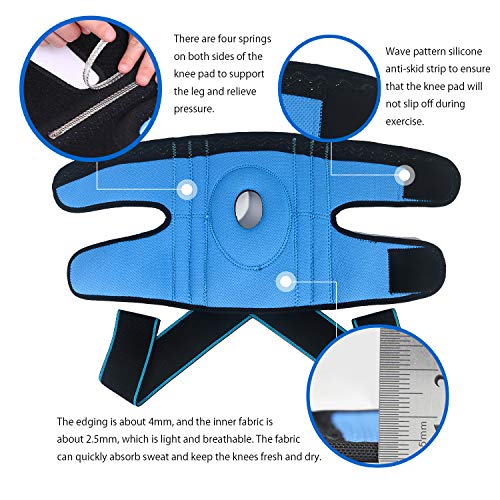 SKDK - دعامة للركبة مضغوطة قابلة للتعديل مع مثبتات جانبية ووسائد جل الرضفة للمساعدة في التعافي والتوتر الرضفي والتهاب المفاصل وكرة السلة والجري والمشي لمسافات طويلة وصالة الالعاب الرياضية (ازرق، M)