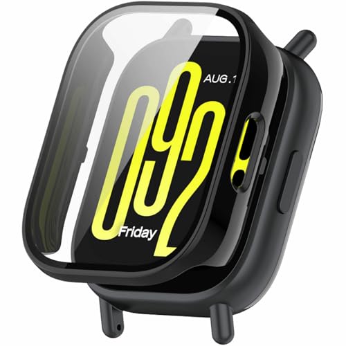 SKEIDO - شاشة حماية من الزجاج المقوى وبولي كربونات لساعة ريدمي ووتش 5 اكتيف و5 لايت الذكية، غطاء حماية للشاشة من الاكسسوارات، من سكيدو، بلون أسود