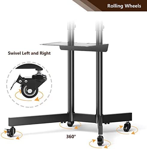 - قابل للحركة والقفل: تسمح لك عجلات حامل التلفزيون المتحركة هذه بنقل التلفزيون بسهولة من غرفة إلى أخرى ويتم قفل عجلات عربة التلفزيون الدوارة بسهولة لضمان السلامة. عجلات حامل التلفزيون المحمول هذه مصنوعة من مادة البولي يوريثين عالية الجودة التي لن تصدر ضوضاء عالية مثل العجلات الشائعة الأخرى.