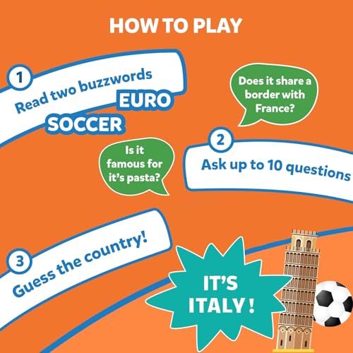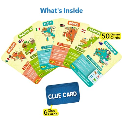 - لعبة بطاقات مثيرة من الأسئلة - اطرح ما يصل إلى 10 أسئلة لتخمين البلد الموجودة على بطاقة اللعبة. فكر بجد واطرح أسئلة ذكية واستخدم بطاقات التلميحات بحكمة، وكن أول لاعب يحقق الفوز بجمع 7 بطاقات لعبة.