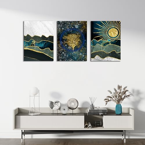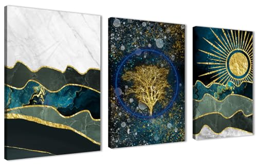 Skills - لوحات فنية جدارية ذات تصميم تجريدي يجمع بين عناصر طبيعية وكونية بأسلوب عصري - تعلق على الحائط لتزيين غرفة المعيشة وغرفة النوم وديكورات المكتب وغيرها - مقاس (30 سم × 40 سم × 3 قطع) من سكيلز