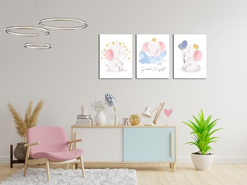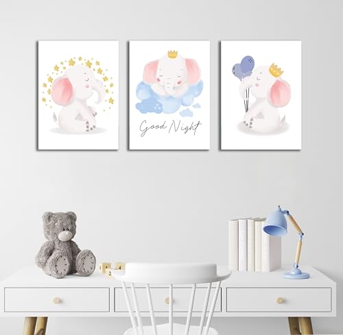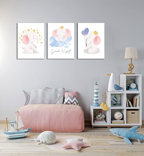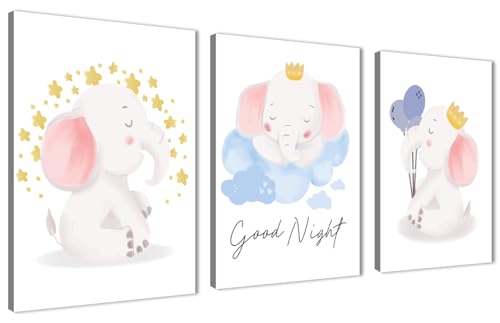 Skills - تابلوهات لغرف الأطفال بتصميم الفيلة الصغيرة برسوماتها المعبرة محببة للأطفال- تخلق جوًا مريحًا في غرفة الطفل تعلق على الحائط لتزيين الغرقة وديكور المنزل - مقاس (30 سم × 40 سم × 3 قطع) من سكيلز