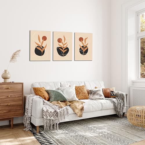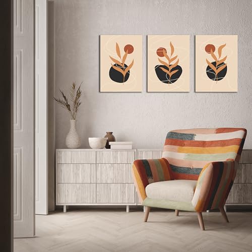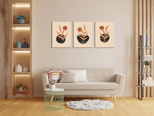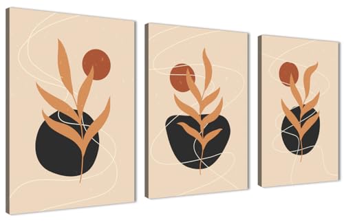 Sk Skills - لوحات فنية جدارية من القماش بتصميم فني بأشكالًا نباتية مجردة - تعلق على الحائط لتزيين غرفة المعيشة وغرفة النوم وديكورات المكتب وغيرها - مقاس (30 سم × 40 سم × 3 قطع) من سكيلز