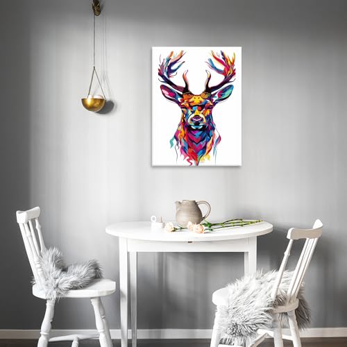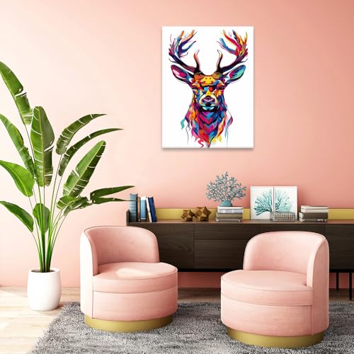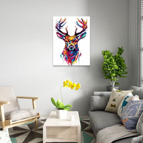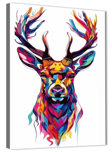 Skills - تابلوه من القماش بتصميم رأس أيّل بأسلوب فني تجريدي يستخدم مجموعة واسعة من الألوان الزاهية - تعلق على الحائط لتزيين غرفة المعيشة وغرفة النوم وديكورات المكتب وغيرها - مقاس (30 سم × 40 سم ) من سكيلز