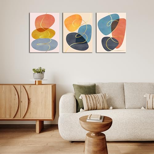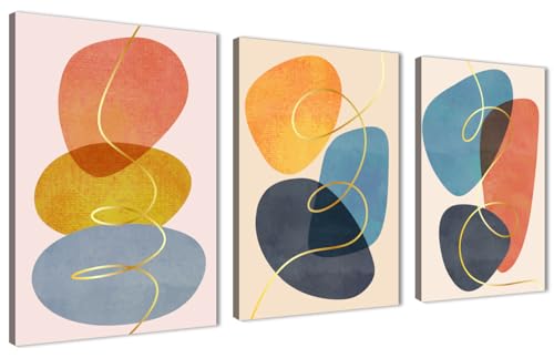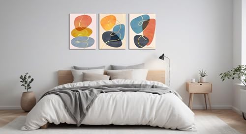 Skills - لوحات فنية جدارية من القماش بتصميم فني حديث وتجريدي يخلق إحساسًا بالتوازن - تعلق على الحائط لتزيين غرفة المعيشة وغرفة النوم وديكورات المكتب وغيرها - مقاس (30 سم × 40 سم × 3 قطع) من سكيلز
