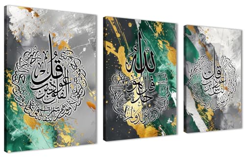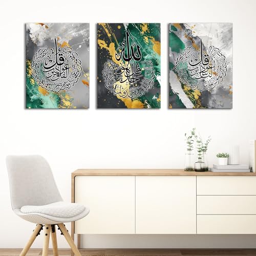 Skills - تابلوه اسلامى من القماش بتصميم فنى حديث يمزج بين عراقة الخط العربي والفن التجريدي - تعلق على الحائط لتزيين غرفة المعيشة وغرفة النوم وديكورات المكتب وغيرها ES20 -مقاس (30 سم × 40 سم × 3 قطع) من سكيلز