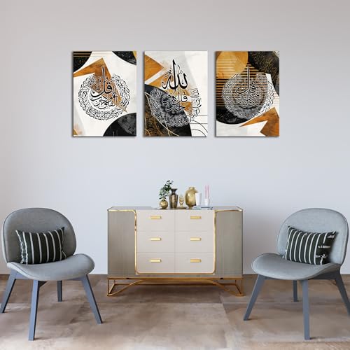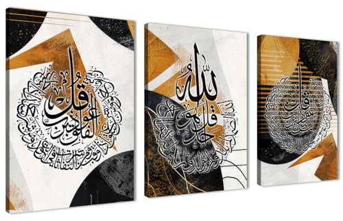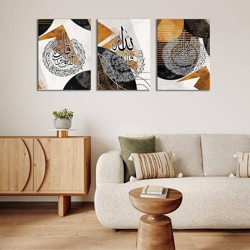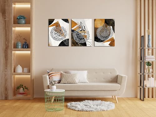 Skills - تابلوه اسلامى من القماش بتصميم فنى حديث يمزج بين عراقة الخط العربي والفن التجريدي - تعلق على الحائط لتزيين غرفة المعيشة وغرفة النوم وديكورات المكتب وغيرها ES25 -مقاس (30 سم × 40 سم × 3 قطع) من سكيلز