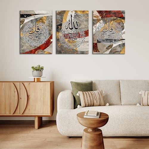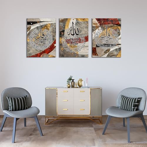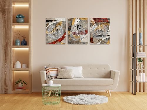 Skills - تابلوه اسلامى من القماش بتصميم فنى حديث يمزج بين عراقة الخط العربي والفن التجريدي - تعلق على الحائط لتزيين غرفة المعيشة وغرفة النوم وديكورات المكتب وغيرها ES29 -مقاس (30 سم × 40 سم × 3 قطع) من سكيلز