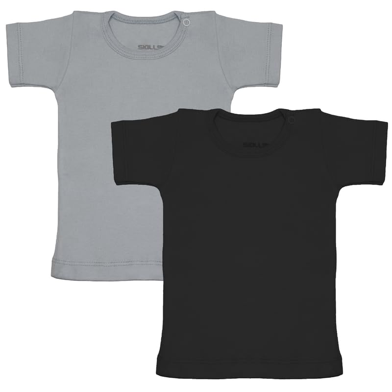 Skills - سكيلز طقم فانلة قطن نصف كم للاولاد من قطعتين، اسود ورمادي، 0-3 اشهر