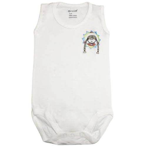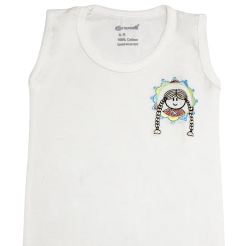 Skills - سكيلز سالوبيت بكباسين قطن بدون اكمام مطرز للبنات - ابيض - 6-9 اشهر