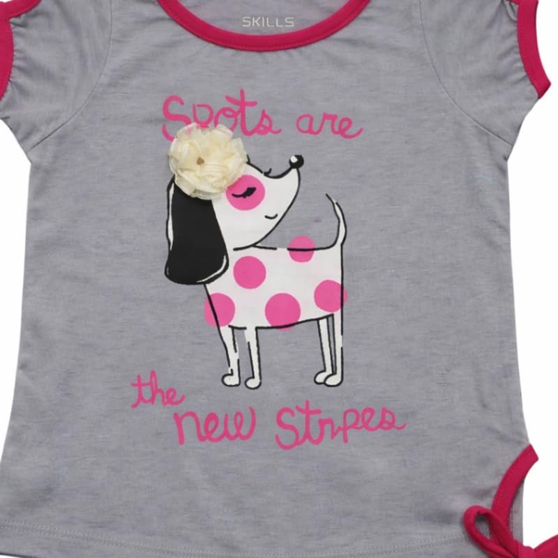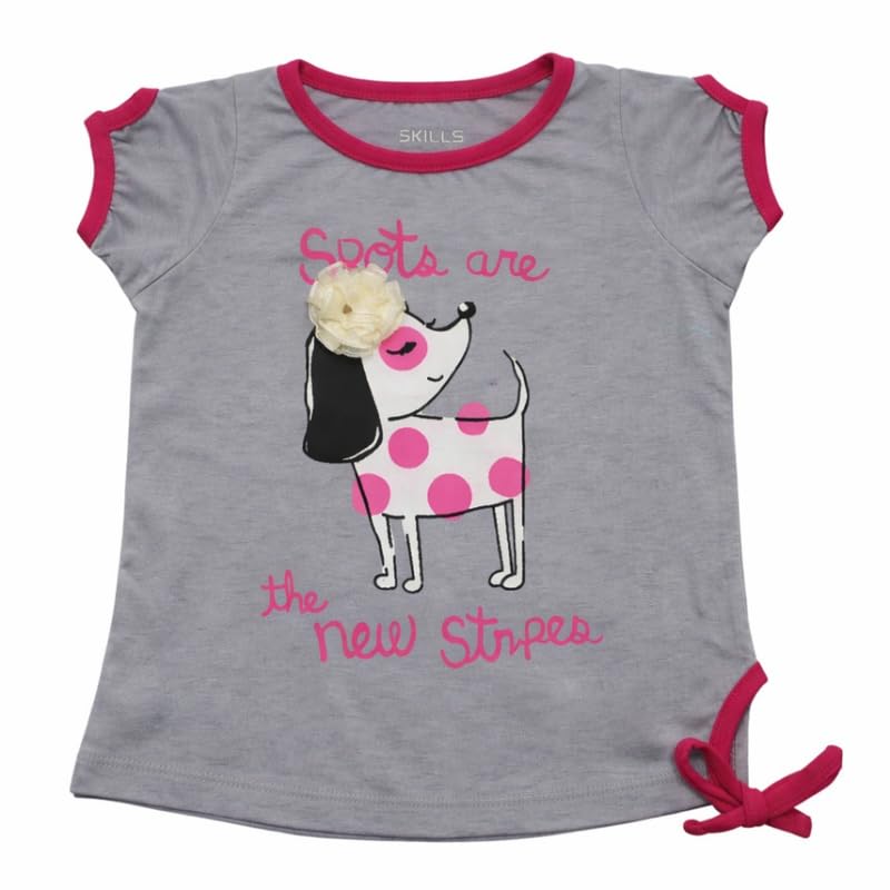Skills - سكيلز تيشرت قطن بدون اكمام مطرز بالزهور للبنات - رمادي وفوشيا، 6-9 اشهر