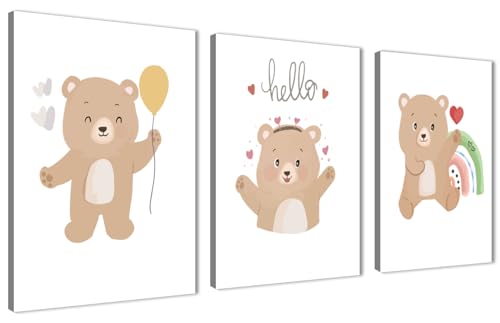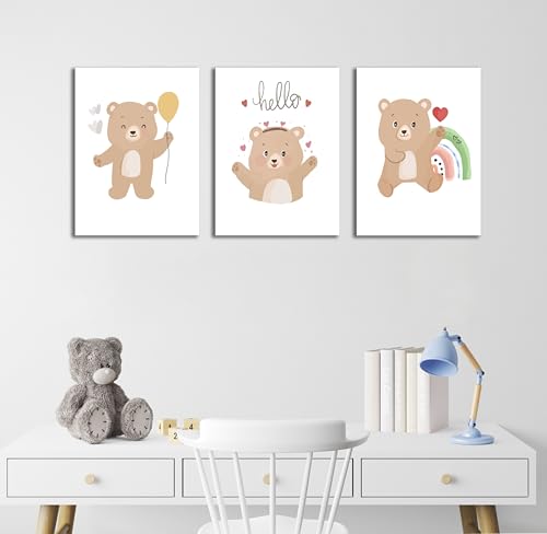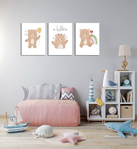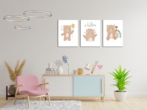 Skills - تابلوهات مصممة لغرف الأطفال ، وتتميز برسومات كرتونية لطيفة لدببة صغيرة بأوضاع مختلفة مع عناصر مرحة - تعلق على الحائط لتزيين الغرفة وديكور المنزل - مقاس (30 سم × 40 سم × 3 قطع) من سكيلز
