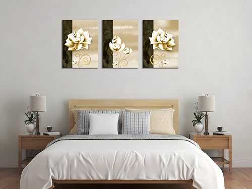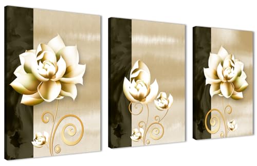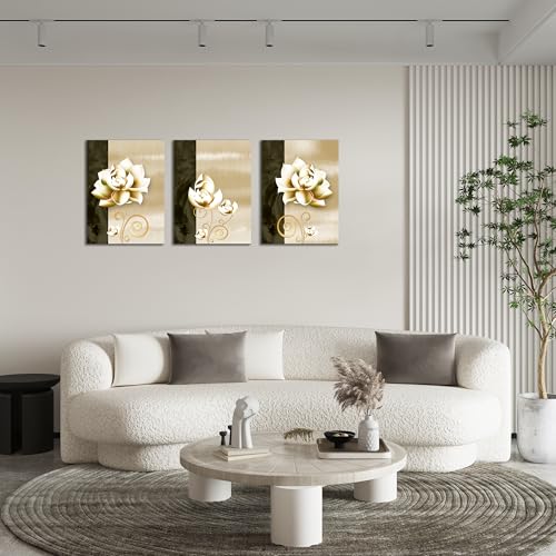 Skills - لوحات فنية جدارية من القماش تصور زهورًا بتصميم فني حديث وتجريدي - تعلق على الحائط لتزيين غرفة المعيشة وغرفة النوم وديكورات المكتب وغيرها - مقاس (30 سم × 40 سم × 3 قطع) من سكيلز