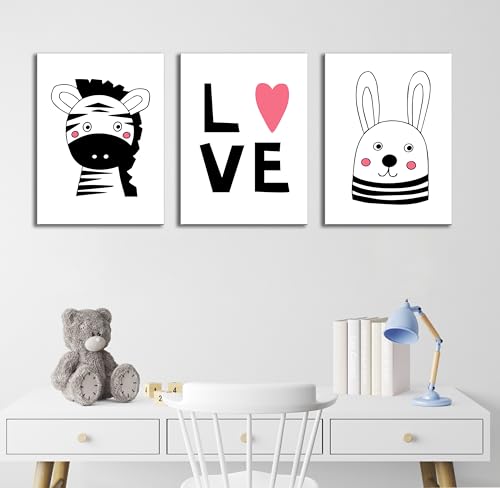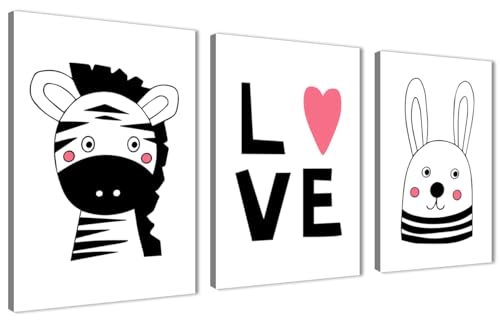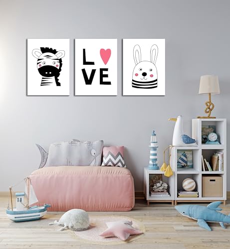 Skills - تابلوهات لغرف الأطفال بتصميم بسيط وعصري ورسومات حيوانات لطيفة وكلمة معبرة - تعلق على الحائط لتزيين الغرقة وديكور المنزل - مقاس (30 سم × 40 سم × 3 قطع) من سكيلز