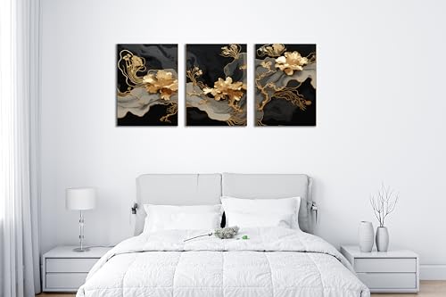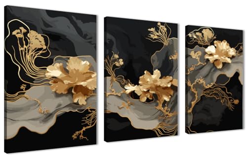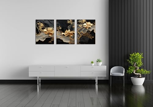 Skills - لوحات فنية جدارية حديثة ذات تصميم تجريدي يجمع بين عناصر نباتية ولمسات فنية عصرية - تعلق على الحائط لتزيين غرفة المعيشة وغرفة النوم وديكورات المكتب وغيرها - مقاس (30 سم × 40 سم × 3 قطع) من سكيلز