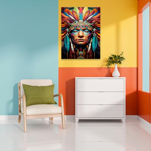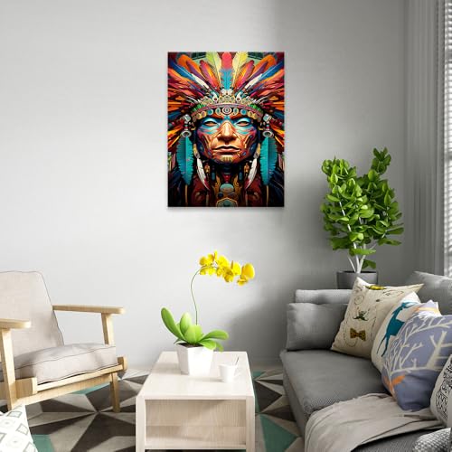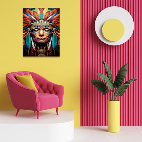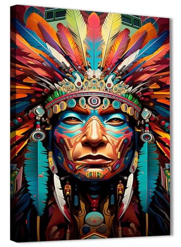 Skills - تابلوه تصور وجه محارب من السكان الأصليين مزينًا بغطاء رأس ريشي ورسوم وجه معقدة - تعلق على الحائط لتزيين غرفة المعيشة وغرفة النوم وديكورات المكتب وغيرها - مقاس (30 سم × 40 سم ) من سكيلز