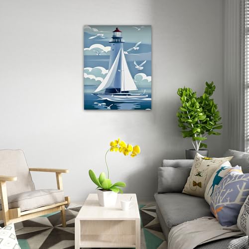 Skills - لوحة فنية ذات طراز رسومي تصور مشهدًا بحريًا- تعلق على الحائط لتزيين غرفة المعيشة وغرفة النوم وديكورات المكتب وغيرها - مقاس (30 سم × 40 سم ) من سكيلز