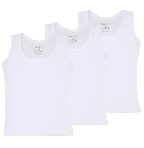 Skills - فانلة داخلية سادة بدون أكمام برقبة دائرية للجنسين من سكيلز، طقم من 3 قطع