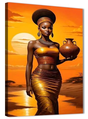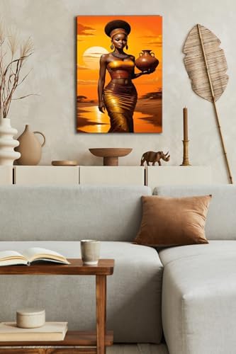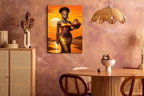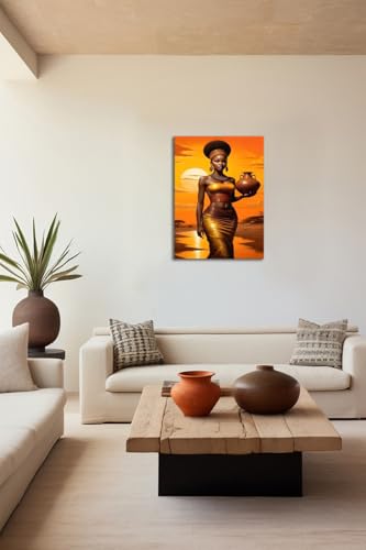 Skills - لوحات فنية جدارية تعبر عن امرأة ذات بشرة سمراء داكنة في مشهد طبيعي دافئ عند غروب الشمس - تعلق على الحائط لتزيين غرفة المعيشة وغرفة النوم وديكورات المكتب وغيرها - مقاس (40 سم × 60 سم ) من سكيلز
