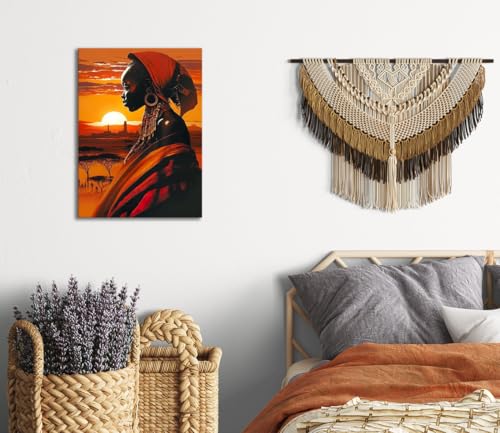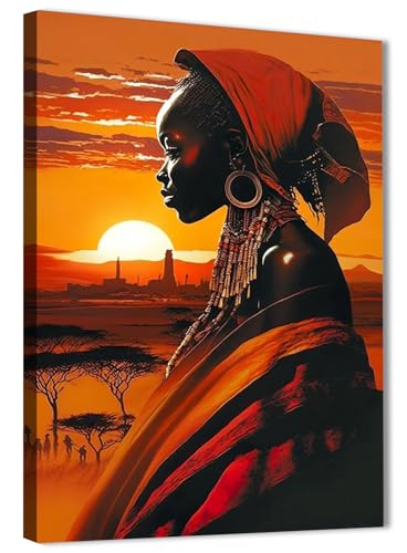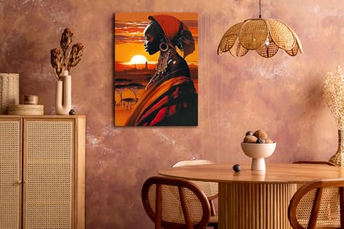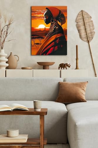 Skills - لوحات فنية جدارية تصور امرأة ذات بشرة داكنة في مشهد أفريقي عند الغروب - تعلق على الحائط لتزيين غرفة المعيشة وغرفة النوم وديكورات المكتب وغيرها - مقاس (30 سم × 40 سم ) من سكيلز