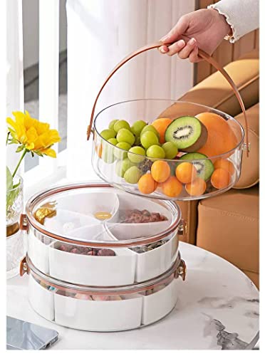 - جودة فائقة- مصنوعة من الأكريليك - خالية من البيسفينول أ، مقاومة للكسر، آمنة وصحية لوضع أي طعام تريده. سهلة التنظيف. صينية ا0لفاكهة جافة محمولة باليد مع غطاء ومقبض متين للاستخدام لفترة طويلة