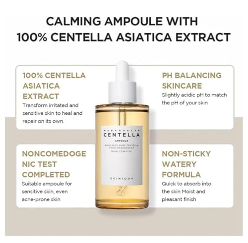 Masksheets - سيروم مدغشقر سنتيلا من سكين 1004، 100 مل، أمبول مهدئ ومرطب مع مستخلص سينتيلا اسياتيكا، للبشرة الحساسة، تركيبة خفيفة الوزن وسريعة الامتصاص، للجنسين