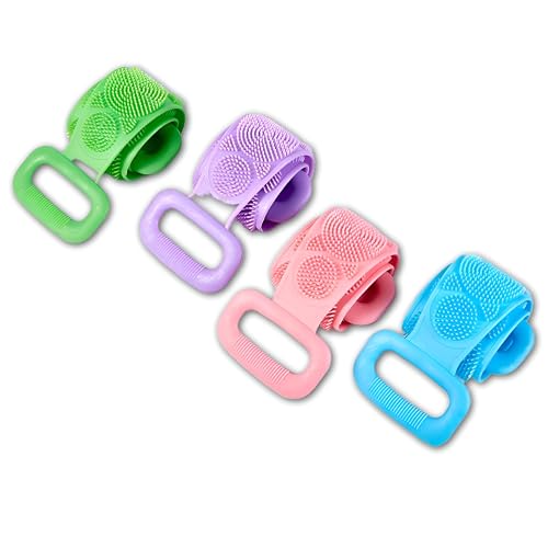 Generic - أدوات العناية بالبشرة من فرشاة استحمام وجهاز تنظيف الجسم متعددة الألوان بمقابض سيليكون ناعمة، مثالية لروتين الاستحمام للرجال والنساء، مجموعة من 4 قطع