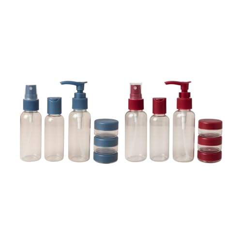 Generic - مجموعة زجاجات سفر للعناية بالبشرة، شفافة مع أغطية حمراء ووردية، تشمل بخاخ ومضخة وبرطمانات 6ق، حاويات مستحضرات تجميل محمولة قابلة لإعادة التعبئة اللوان متعددة (2)