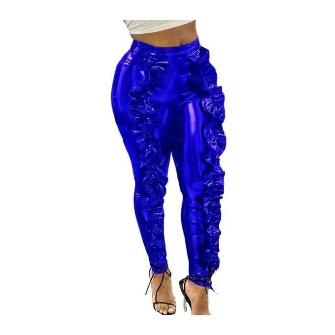 Generic - بنطلون سكيني ضيق جلد ازرق للنساء