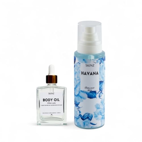 - يتضمن رذاذ الجسم هافانا وزيت جاف لامع.