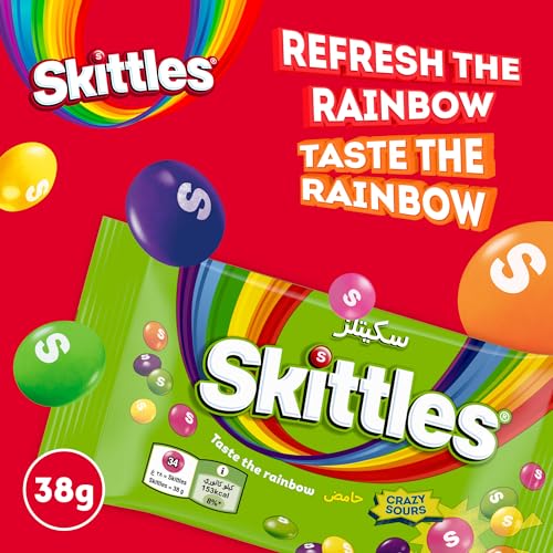 Skittles - حلوى كريزي سور سويتس، تذوق الحلوى بألوان قوس قزح، حلوى بنكهات فواكه متنوعة من الكرز واليوسفي والتفاح والأناناس والتوت من سكيتلز، 38 جرام