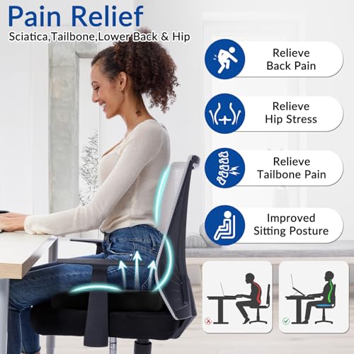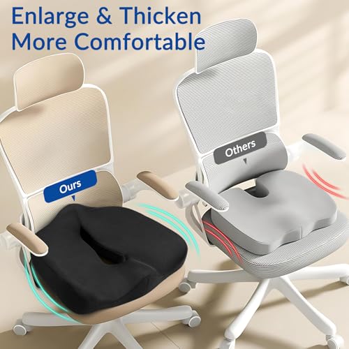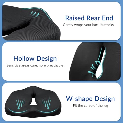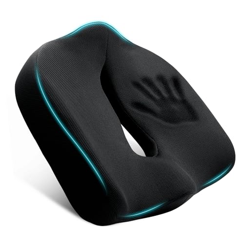 skmeditec - وسادة مقعد مريحة من رغوة الذاكرة لكرسي المكتب، وسادة كبيرة بتصميم على شكل حرف U لتخفيف الضغط وعرق النسا والعصعص وتخفيف آلام الظهر للجلوس الطويل في المنزل والسيارة بلون أسود من سكميديتيك