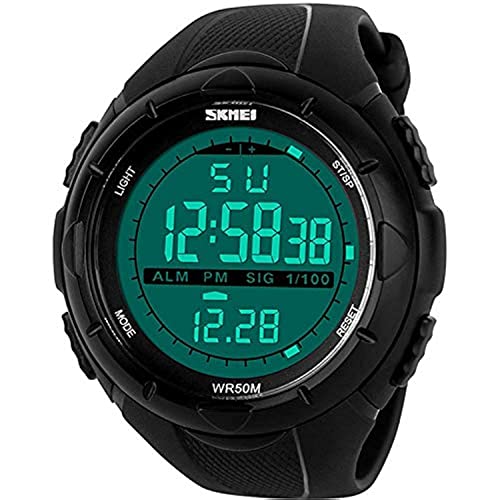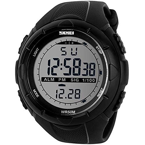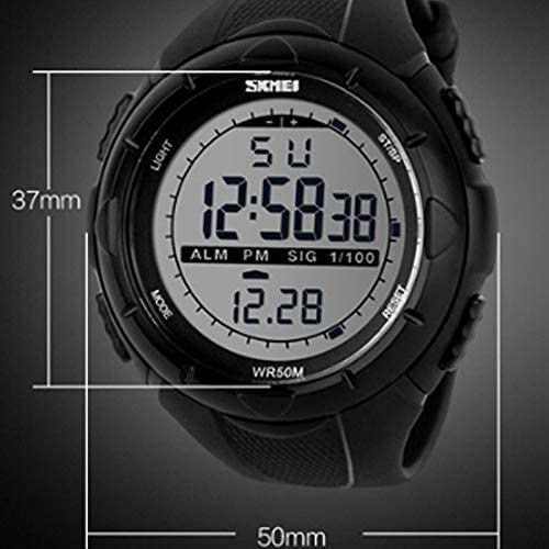 SKMEI - ساعة يد رياضية بشاشة رقمية 1025 LCD ومقاومة للماء حتى 50 متر من سكماي متعددة الوظائف بسوار السيليكون - اسود للرجال