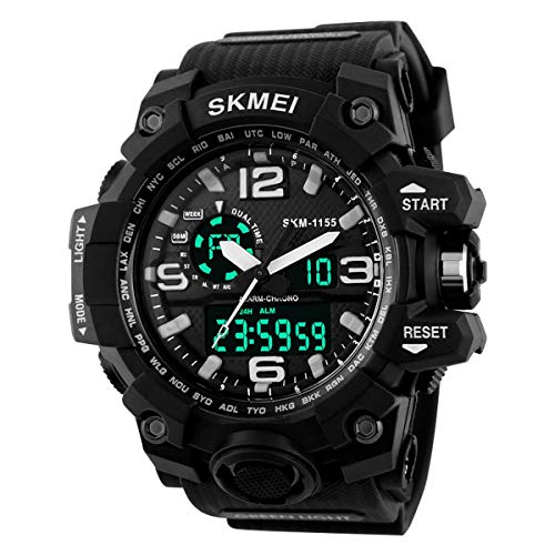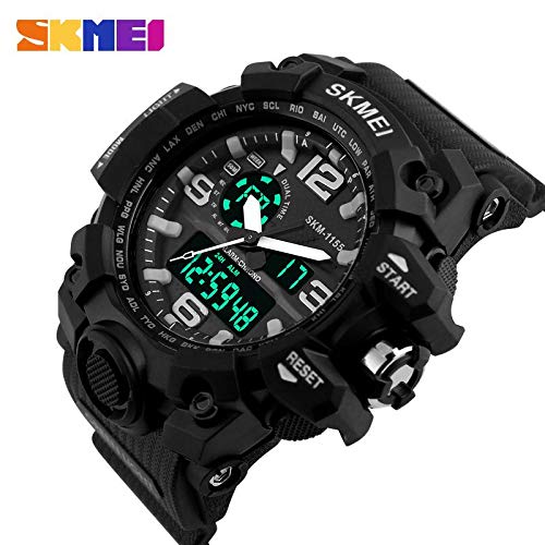 SKMEI - سكمي ساعة رياضية رجال انالوج-رقمي جلد صناعي، بمينا أسود