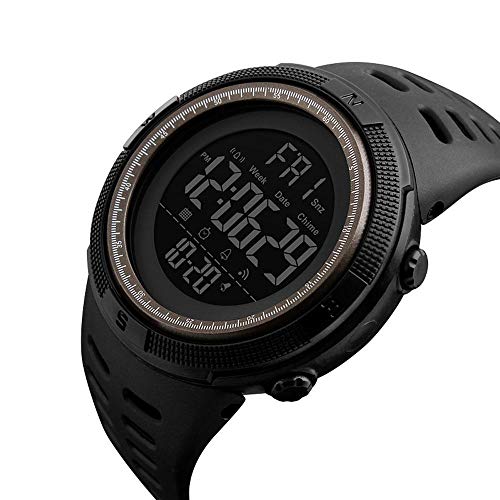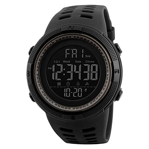 SKMEI - ساعة رياضية رقمية مقاومة للماء حتى عمق 50 متر للرجال من سكيمي، لون أسود، 1251