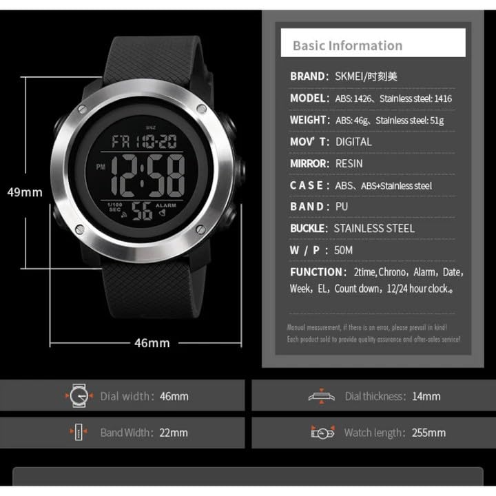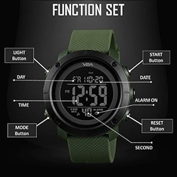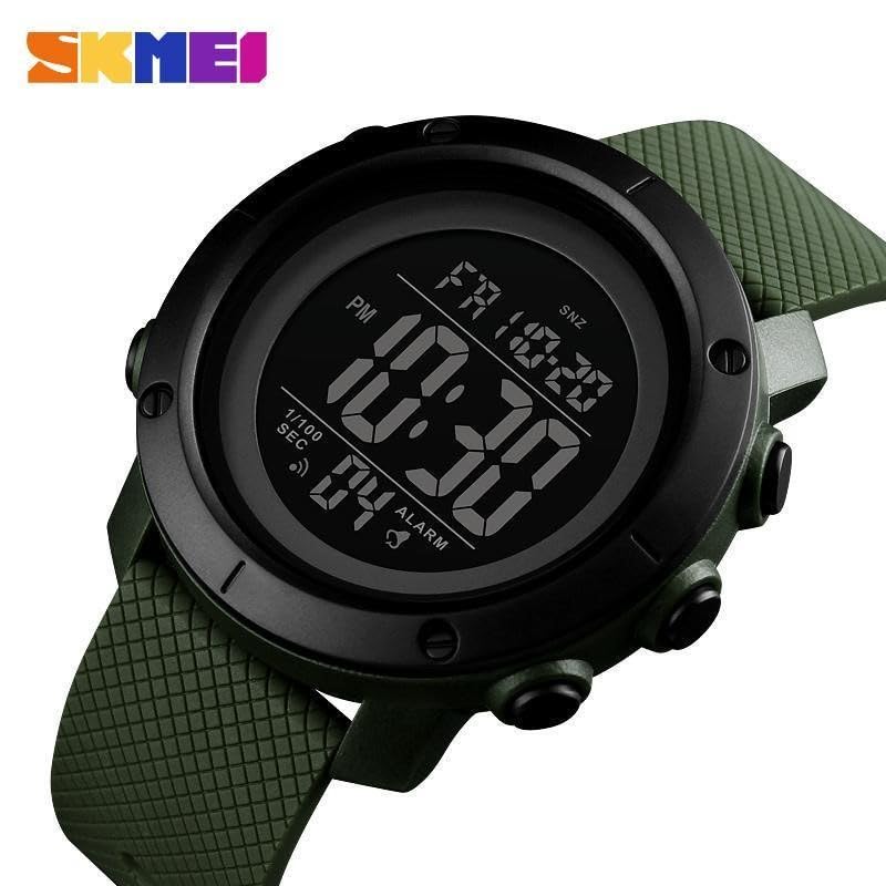 SKMEI - SKMEI 1426 ساعة رياضية رقمية للرجال، تصميم تاكتيكال، مقاومة للماء 50 متر، سوار مطاطي أخضر، 46 مم