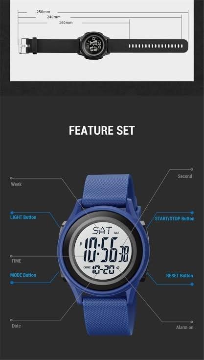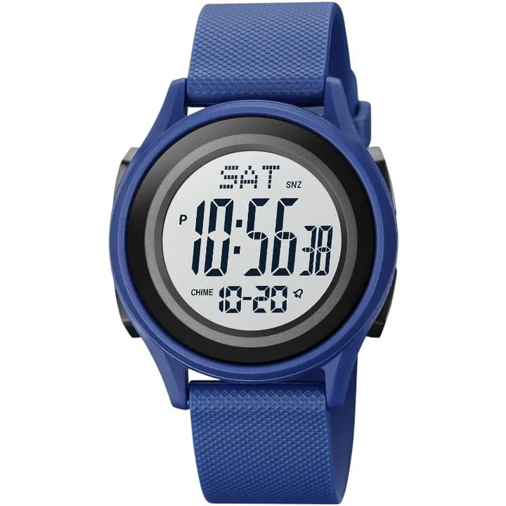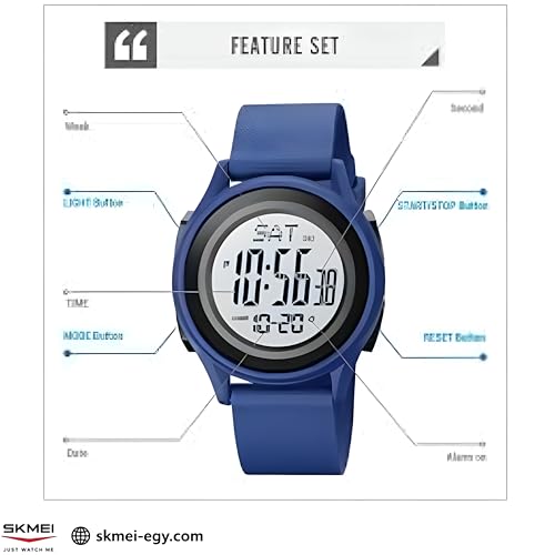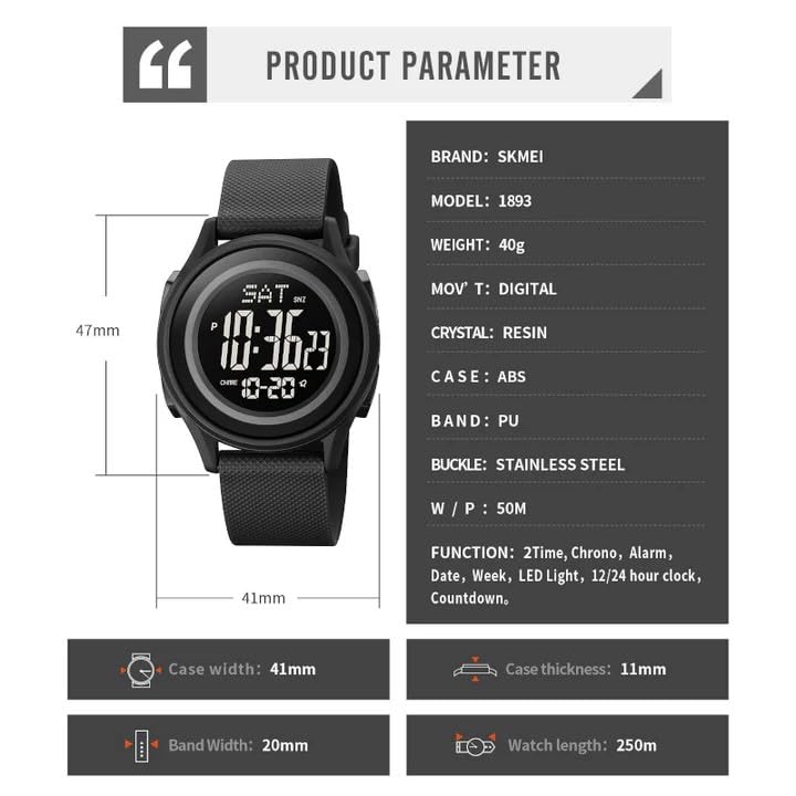 SKMEI - SKMEI ساعة رقمية رياضية موديل 1893، للجنسين، مقاومة للماء 50 متر، قرص دائري 41 ملم، هيكل ABS، سوار PU، إضاءة خلفية، كرونوغراف، منبه.