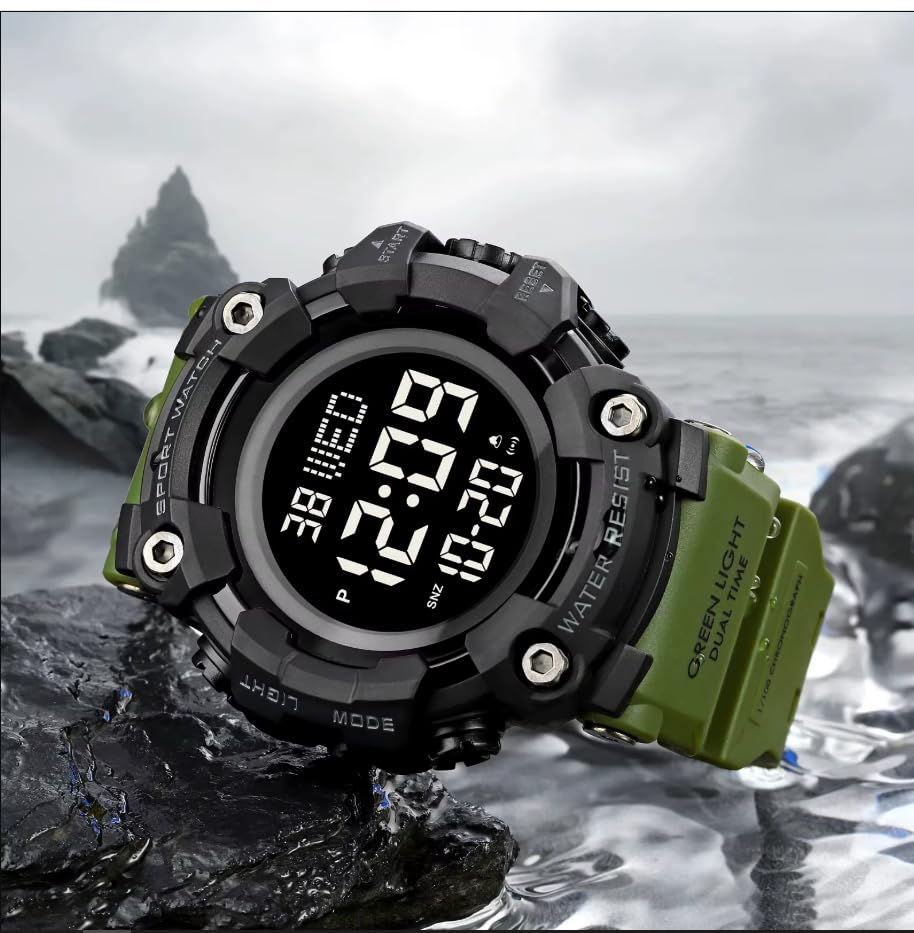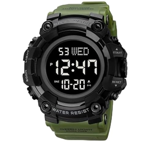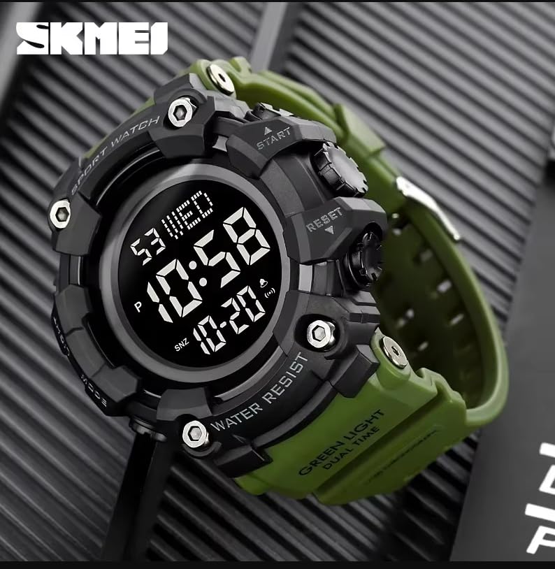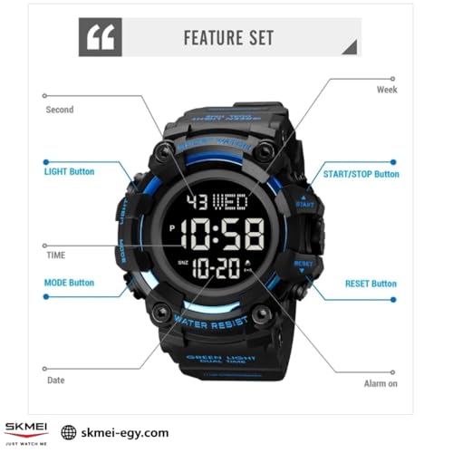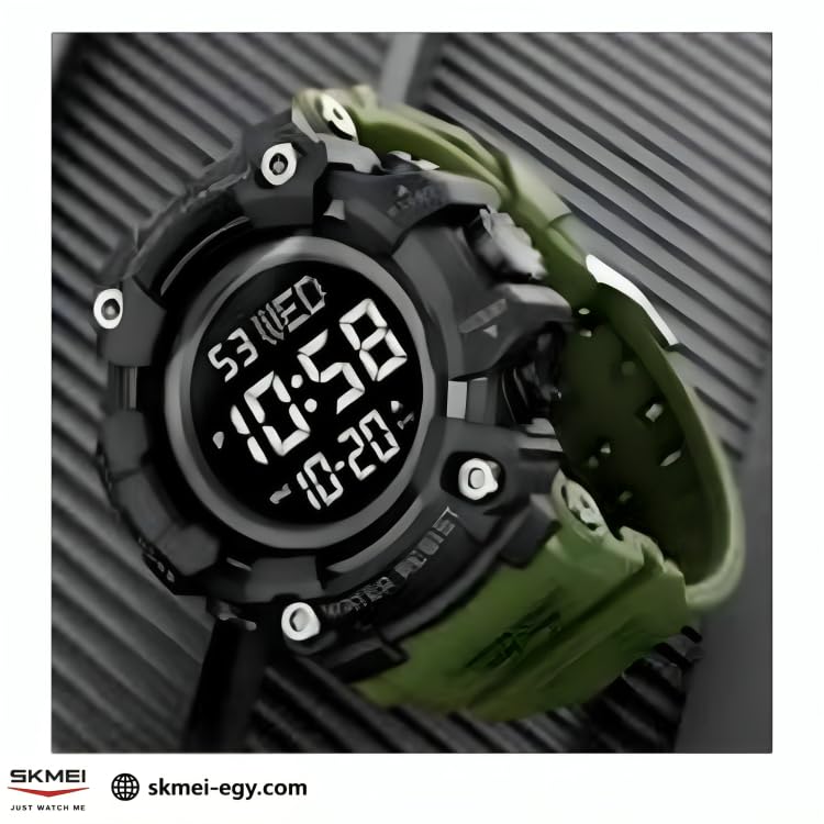 SKMEI - SKMEI 1968 ساعة رقمية رياضية للرجال، تصميم تكتيكي، مقاومة للماء 50 متر، شاشة LED، سوار سيليكون.