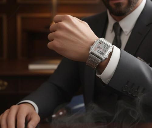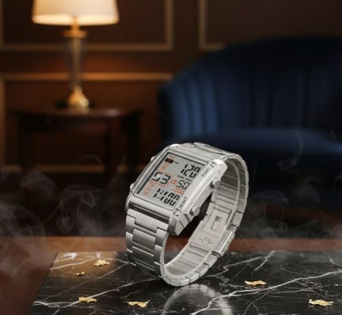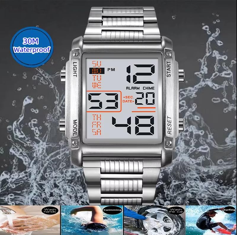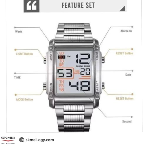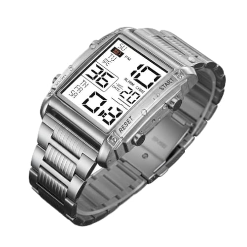 SKMEI - SKMEI 2206 ساعة يد رقمية رياضية للرجال، فولاذ مقاوم للصدأ، سبائك الزنك، إضاءة LED، منبه، تاريخ، ساعة إيقاف، مقاومة للماء 30 متر
