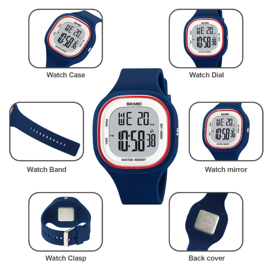 SKMEI - SKMEI ساعة يد رقمية رياضية موديل 2290، مقاومة للماء 50 متر، سيليكون، كرونوغراف ومنبه، تصميم مربع