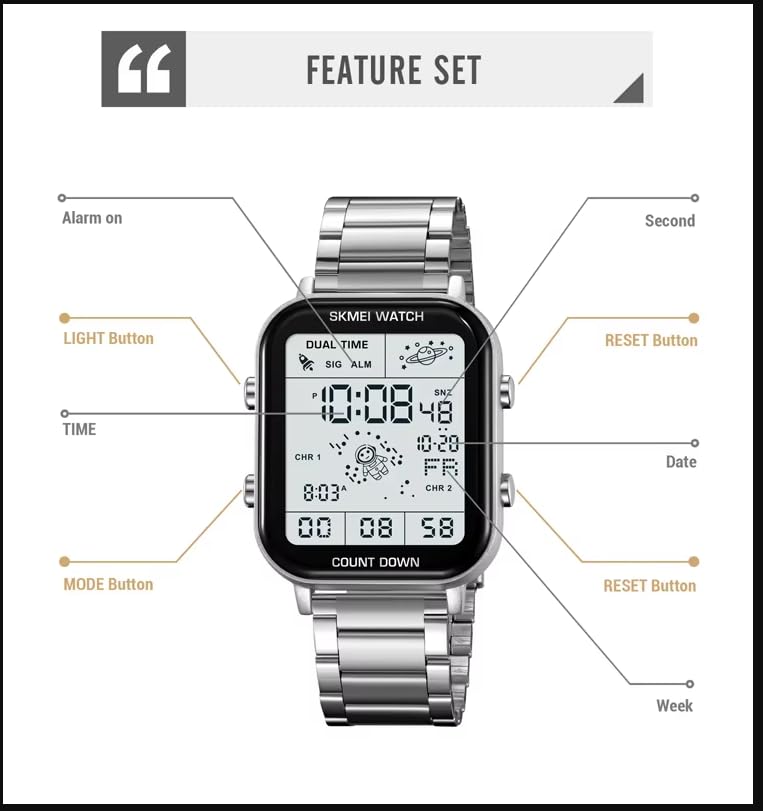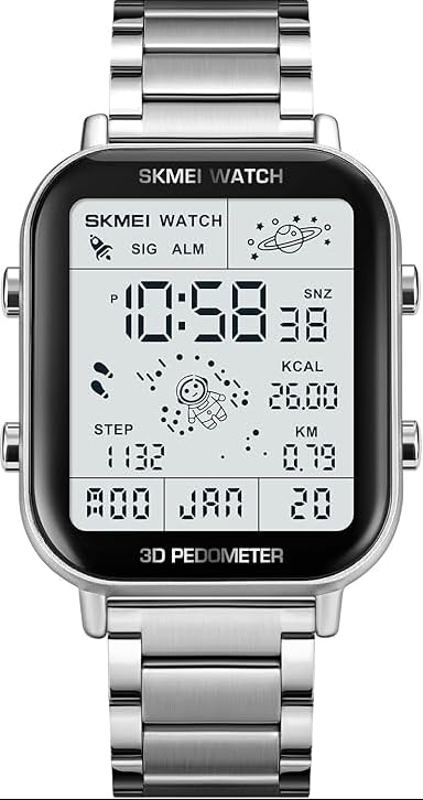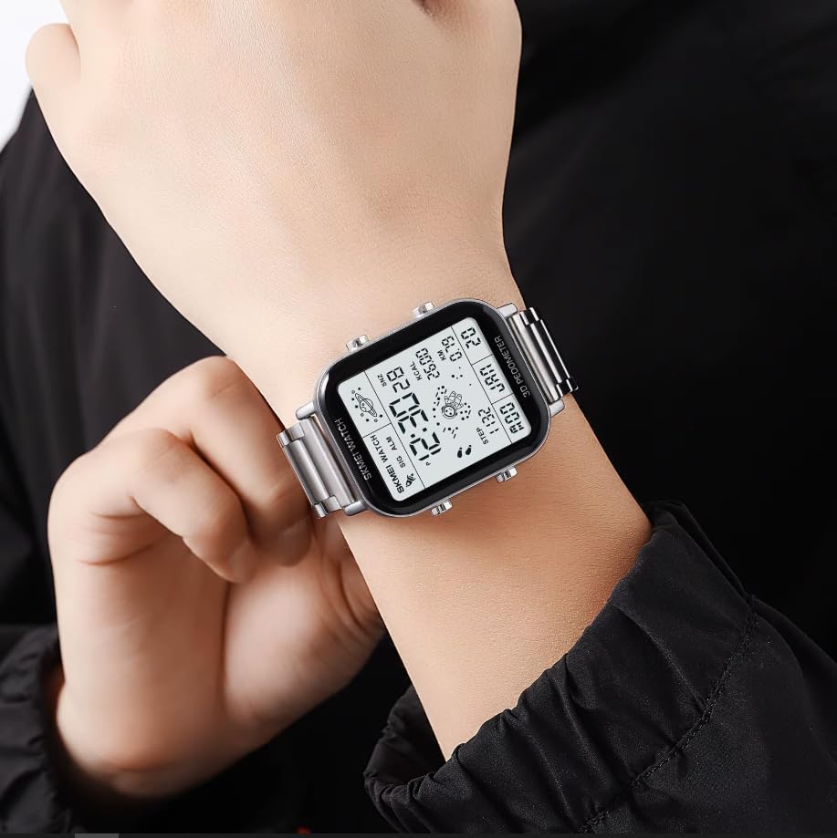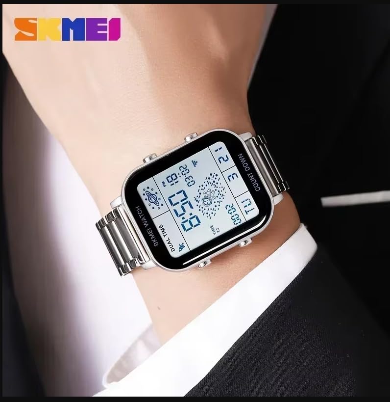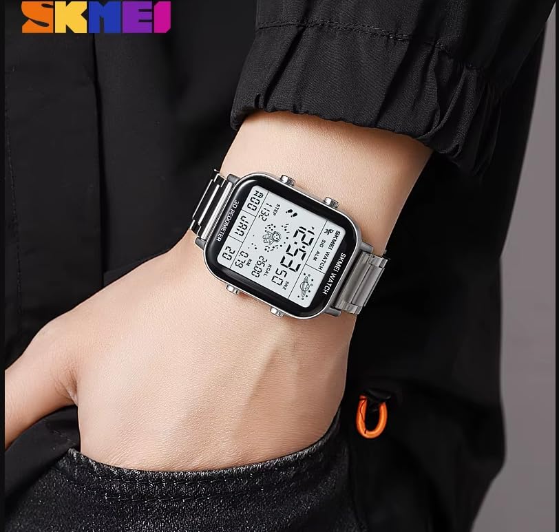 SKMEI - SKMEI 2301 ساعة رقمية رجالية رياضية، فولاذ مقاوم للصدأ، مقاومة للماء 30 متر، إضاءة ليلية ومنبه