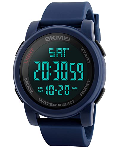 SKMEI - ساعة معصم رياضية رقمية وبضوء LED، مضادة للصدمات وللماء مع بمنبه كرونو وساعة ايقاف للرجال، من العلامة التجارية لازياء الرجال سكماي, أزرق داكن