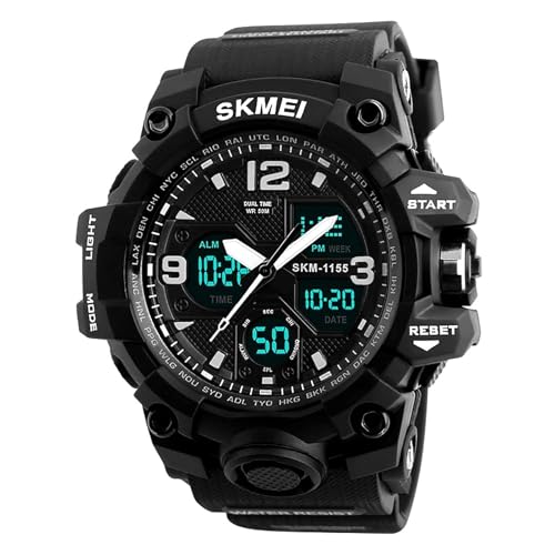 SKMEI - ساعة كاجوال ديجيتال من الجلد الصناعي للرجال سكماي - 20190118002 بسوار أسود
