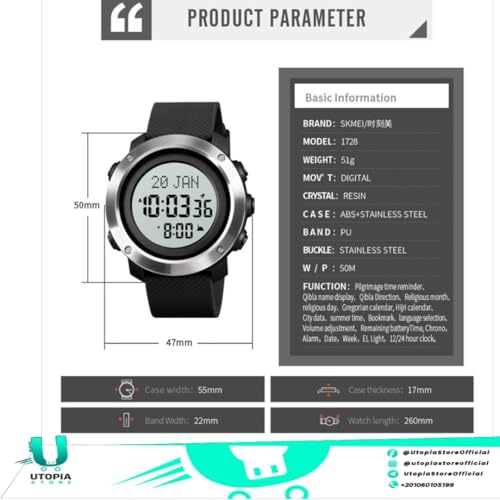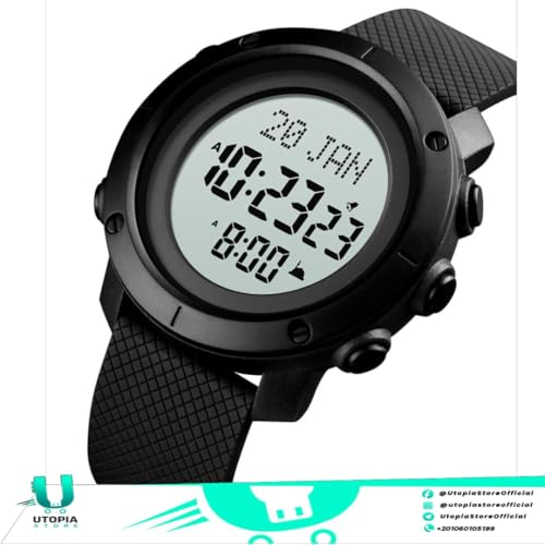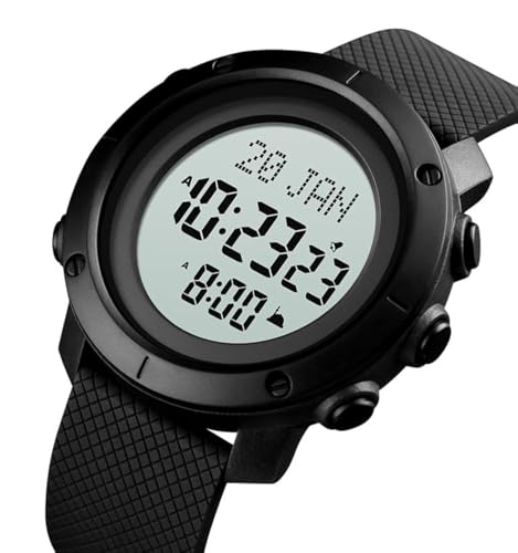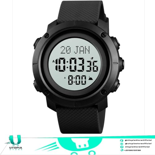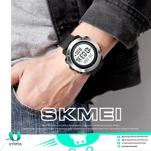 SKMEI - ساعة رياضية من سكيمي مقاومة للماء مع منبه وساعة توقف مناسبة للسباحة للنساء والرجال شديده التحمل ساعات بإضاءة خلفية شفافة شاشة LED موديل 1728 أسود - أبيض