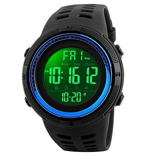 SKMEI - ساعة رقمية للرجال من سكيمي، أسود وأزرق، 1251