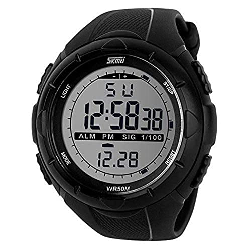 SKMEI - سكمي ساعة سباحة رقمية LED عسكرية بطول 50 متر للرجال، بمينا رمادي